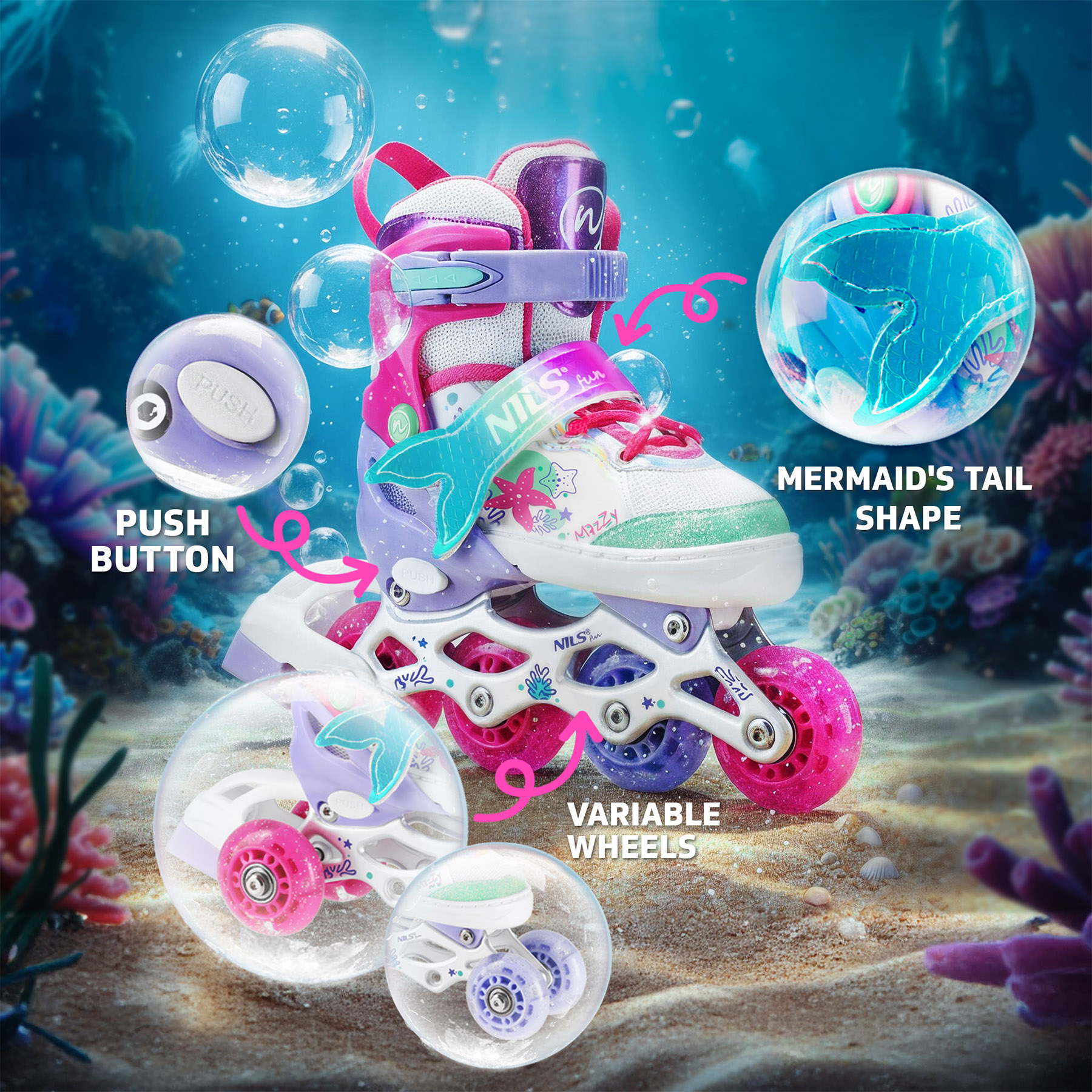 Většina dětských bruslí 2v1 i 4v1 má nastavitelnou velikost skeletu. Obvykle lze velikost upravit v rozsahu 3 až 4 velikostí.